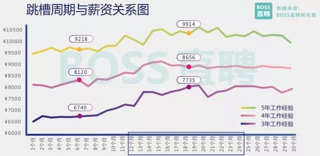 前一份工作持續(xù)12-24個月的求職者是跳槽大軍主要漲薪人群 跳槽旺季中,漲薪是眾多求職者的主要訴求之一。 BOSS直聘研究院數(shù)據(jù)顯示,上一份工作堅(jiān)持不到6個月又再次跳槽的求職者中,超六成人的薪資低于同齡求職者均值。 從職場人目前薪酬水平與前一份工作時(shí)長的關(guān)系來看,前一份工作時(shí)長在12-24個月的求職者,跳槽后所獲得的薪資相對最高。