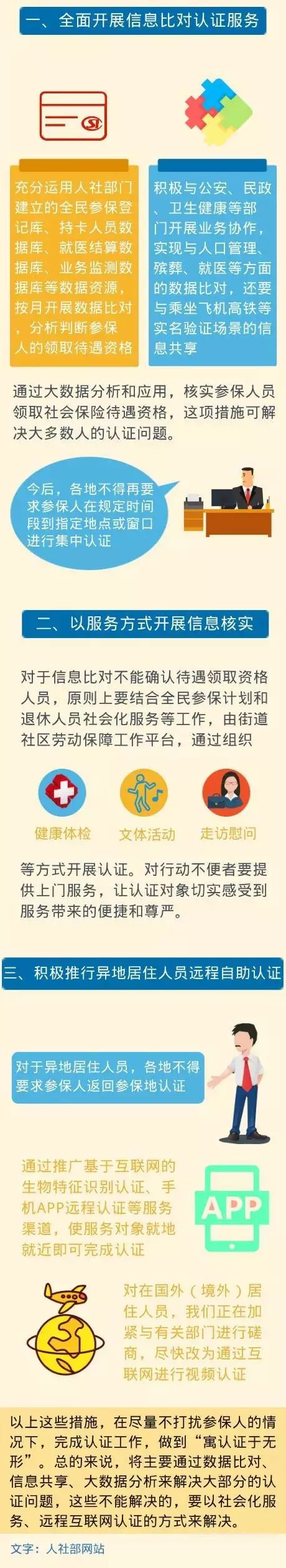 而人社部在7月5日宣布了一個(gè)重要消息:將全面取消領(lǐng)取社保待遇資格集中認(rèn)證,惠及1億多退休人員,讓退休人員不用再跑就完成認(rèn)證!