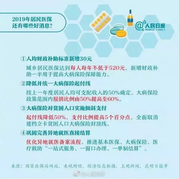 確定了!居民醫(yī)保個人賬戶20年底前取消 近日,國家醫(yī)療保障局、財政部印發(fā)了《關(guān)于做好2019年城鄉(xiāng)居民基本醫(yī)療保障工作的通知》,文件當(dāng)中有一條規(guī)定: 實行個人(家庭)賬戶的,應(yīng)于2020年底前取消,向門診統(tǒng)籌平穩(wěn)過渡;已取消個人(家庭)賬戶的,不得恢復(fù)或變相設(shè)置。 政策內(nèi)容公布后,有新變化,實際問題作出了相關(guān)闡釋與規(guī)定,這些新變化具體有: 一、居民醫(yī)保人均財政補助新增30元,每人每年不低于520元 《通知》指明,2019年城鄉(xiāng)居民醫(yī)保人均財政補助標準新增30元,達到每人每年不低于520元,新增財政補助一半用于提高大病保險保障能力(在2018年人均籌資標準上增加15元); 個人繳費同步新增30元,達到每人每年250元。省級財政要加大對深度貧困地區(qū)傾斜力度,完善省級及以下財政分擔(dān)辦法。地方各級財政要按規(guī)定足額安排財政補助資金,按規(guī)定及時撥付到位。 各級醫(yī)療保障部門要有序推進城鄉(xiāng)居民醫(yī)療保險費征管職責(zé)劃轉(zhuǎn)前后的工作銜接,確保年度籌資量化指標落實到位。 二、提升保障,高血壓、糖尿病等納入醫(yī)保報銷 《通知》著重提出要提高政策范圍內(nèi)住院費用報銷比例,建立健全城鄉(xiāng)居民醫(yī)保門診費用統(tǒng)籌及支付機制,重點保障群眾負擔(dān)較重的多發(fā)病、慢性病。并且將高血壓、糖尿病等門診用藥納入醫(yī)保報銷,具體方案另行制定。 此外還應(yīng)提高大病保險保障功能。降低并統(tǒng)一大病保險起付線,原則上按上一年度居民人均可支配收入的50%確定,低于該比例的,可不做調(diào)整; 政策范圍內(nèi)報銷比例由50%提高至60%;加大大病保險對貧困人口的支付傾斜力度,貧困人口起付線降低50%,支付比例提高5個百分點,全面取消建檔立卡貧困人口大病保險封頂線,進一步減輕大病患者、困難群眾醫(yī)療負擔(dān)。 三、全面建立統(tǒng)一的城鄉(xiāng)居民醫(yī)保制度 城鎮(zhèn)居民基本醫(yī)療保險和新型農(nóng)村合作醫(yī)療制度尚未完全整合統(tǒng)一的地區(qū),要按照黨中央、國務(wù)院部署要求,于2019年底前實現(xiàn)兩項制度并軌運行向統(tǒng)一的城鄉(xiāng)居民醫(yī)保制度過渡。 制度統(tǒng)一過程中,要鞏固城鄉(xiāng)居民醫(yī)保覆蓋面,確保參保率不低于現(xiàn)有水平,參保連續(xù)穩(wěn)定,做到應(yīng)保盡保;完善新生兒、兒童、學(xué)生以及農(nóng)民工等人群參保登記及繳費辦法,避免重復(fù)參保。 已有其他醫(yī)療保障制度安排的,不納入城鄉(xiāng)居民醫(yī)保覆蓋范圍;妥善處理特殊問題、特殊政策,做好制度統(tǒng)一前后政策銜接,穩(wěn)定待遇預(yù)期,防止泛福利化傾向。 四、完善規(guī)范大病保險政策和管理 《通知》強調(diào)各省、自治區(qū)、直轄市要結(jié)合全面建立統(tǒng)一的城鄉(xiāng)居民醫(yī)保制度,統(tǒng)一規(guī)范大病保險籌資及待遇保障政策,推動統(tǒng)籌地區(qū)之間待遇保障標準和支付水平銜接平衡、大體一致。 要優(yōu)化大病保險經(jīng)辦管理服務(wù)。大病保險原則上委托商業(yè)保險機構(gòu)承辦,各級醫(yī)療保障部門要完善對商業(yè)保險機構(gòu)的考核機制,建立健全以保障水平和參保人滿意度為核心的考核評估體系,督促商業(yè)保險機構(gòu)提高服務(wù)管理效能,在規(guī)范診療行為、控制醫(yī)療費用、引導(dǎo)合理就醫(yī)等方面發(fā)揮應(yīng)有作用。 五、切實落實醫(yī)療保障精準扶貧硬任務(wù) 《通知》強調(diào),各地要深入貫徹落實《醫(yī)療保障扶貧三年行動實施方案(2018-2020年)》要求,聚焦深度貧困地區(qū)和特殊貧困群體,著力解決“兩不愁、三保障”中醫(yī)療保障薄弱環(huán)節(jié)。 確保貧困群眾應(yīng)保盡保,充分發(fā)揮三重保障功能,按照現(xiàn)有支付范圍和既定標準保障到位,建立防范和化解因病致貧、因病返貧的長效機制,切實落實醫(yī)療保障精準扶貧硬任務(wù)。 六、全面做實地市級統(tǒng)籌 目前,統(tǒng)籌地區(qū)基本醫(yī)療保險基本上已實現(xiàn)地市級統(tǒng)籌,但近一半是基金調(diào)劑模式,還沒有實現(xiàn)基金統(tǒng)收統(tǒng)支。為鞏固提升待遇保障水平,《通知》明確要求各地從以下重點入手:一是實現(xiàn)基金統(tǒng)收統(tǒng)支、二是實現(xiàn)政策制度統(tǒng)一、三是實現(xiàn)一體化經(jīng)辦管理。 同時,鼓勵有條件的省、自治區(qū)、直轄市,按照“分級管理、責(zé)任分擔(dān)、統(tǒng)籌調(diào)劑、預(yù)算考核”的總體思路,探索省級統(tǒng)籌方案。