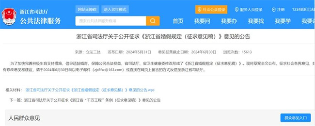 1、浙江婚假擬延長(zhǎng)至13天 近期,浙江省司法廳關(guān)于公開征求《浙江省婚假規(guī)定(征求意見稿)》意見的公告中提到依法辦理結(jié)婚登記的職工,享受婚假十天,參加婚前醫(yī)學(xué)檢查的,增加婚假三天。