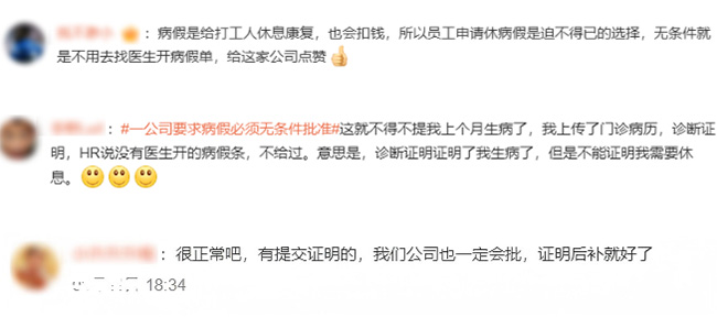 近日,一公司要求病假必須無條件批準,相關話題引發網友熱議。
